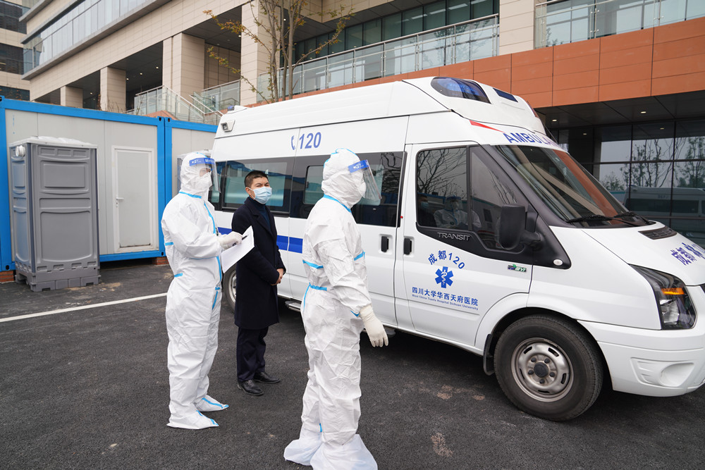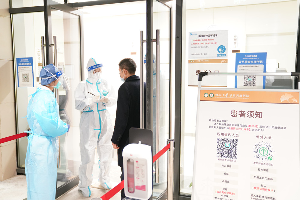 上午9点,金涛副院长宣布演练开始。各专业组迅速就位,进入临战状态。此时,门诊A3区15诊室模拟“接诊”一位近期从境外返蓉并有轻度味觉减退的患者,接诊人员立即按照程序上报信息,按照院内处置流程由分诊护士护送到发热筛查点,进行核酸采样、血常规、胸部CT等检查。演练按照接诊和转运、发热门诊处置和隔离留观、阳性结果上报、专家会诊、疫情报告、院区封控、患者转运、流行病学调查、人员分类处置、环境采样、终末消毒等模块,对疫情防控应急处置进行了全流程模拟。