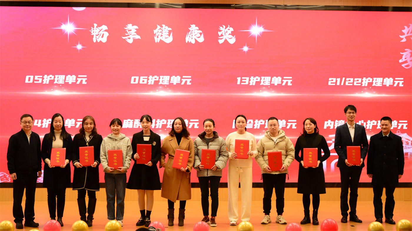 颁奖环节,护理部对在华西医院建院130周年及华西天府医院开院1周年院庆系列活动、护理质量安全保障与示范工作推进中涌现出的优秀集体和个人进行了表彰。07护理单元、20护理单元等13个护理单元荣获院庆系列活动“护理论健”科普比赛——“科普创新奖”“畅享健康奖”,万雯旖、张宇宸等10人荣获院庆系列活动“经典传承人”奖项,03护理单元、17护理单元等4个护理单元荣获“制度践行先锋团队”,11护理单元、15护理单元等5个护理单元荣获“优质护理服务先进集体”,21、22护理单元及中央运输护理单元荣获“共享示范单元”,李梅、蒋丽等10人获得“教学之星”奖项,康焰院长、金涛副院长及相关部门负责人分别为获奖集体和个人颁奖。