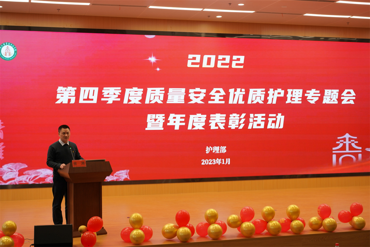 1月16日下午,我院2022年第四季度护理质量安全与优质护理服务专题会暨年度表彰活动在行政楼多功能厅召开。康焰院长、金涛副院长出席活动,护理质量安全管理委员会成员、优质护理服务领导小组成员、相关职能部门负责人、全院护士长以及受表彰的集体和个人代表等80余人参会。护理部黄浩主任主持活动。