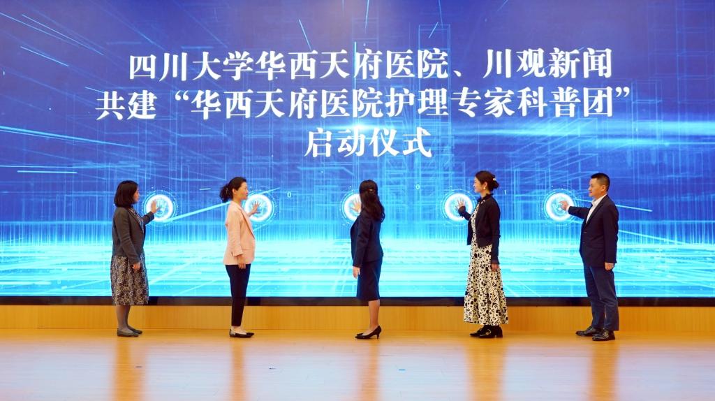 活动上,真人电子网址及川观新闻相关负责人共同按下启动键,见证真人电子网址、川观新闻共建“华西天府医院护理专家科普团”正式启动。