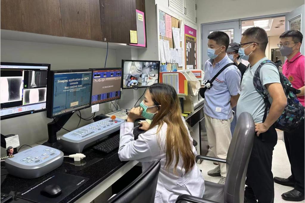 会议期间,代表团一行前往朱拉隆功国王纪念医院进行拜访学习。朱拉隆功国王纪念医院(KCMH)成立于1914年,位于曼谷,现已发展成为泰国领先的医疗中心之一。该医院以其卓越的临床护理、教育和研究而闻名,拥有1479张床位,也是泰国主要的医学教育和研究中心。代表团一行对朱拉隆功国王纪念医院影像中心、质子中心及肿瘤中心等进行参观,从科室人员构成、业务量、新技术应用及设备、人才培养都做了细致交流和讨论。本次交流大会不仅增进与参会各国、各地区同仁之间的友谊,圆满的完成了国际学术交流任务,也为未来双方的进一步合作与交流打下了坚实的基础。