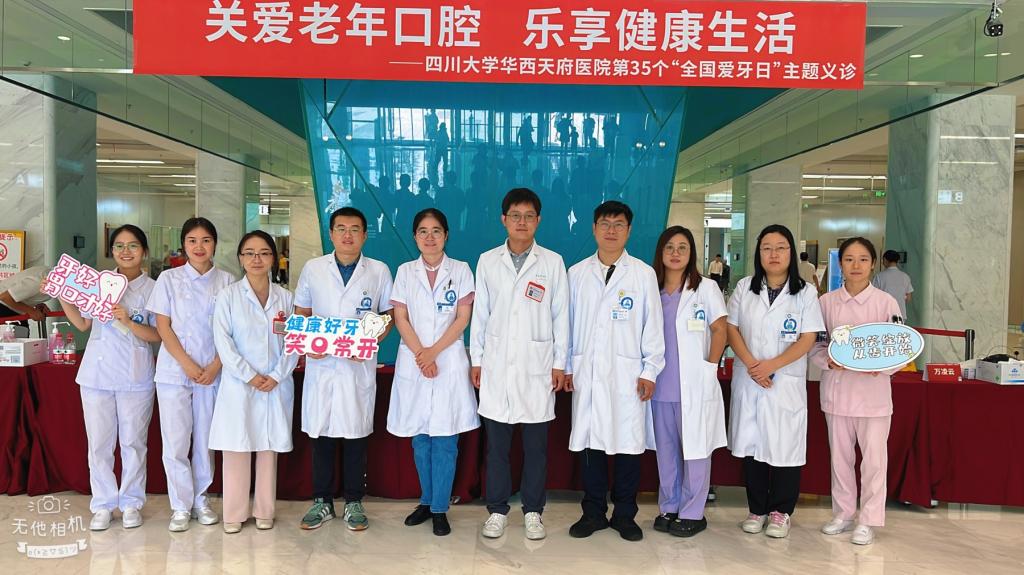 今年7月份,华西天府医院与华西口腔医院强强联合,口腔科门诊正式开诊。920全国爱牙日义诊当天,除了华西天府医院的何姝姝、张城浩、万凌云、杨帆等7位口腔医护专家,华西口腔医院本部的张士文、杨文宾、李津乐3位专家也来到现场,共同为新区居民开展口腔健康检查、进行牙病治疗指导,提供了权威的口腔健康咨询服务和爱齿护齿科普宣教。