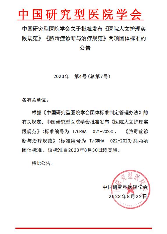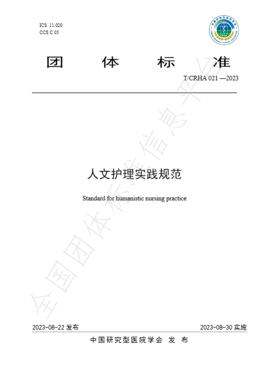 近日,由我院护理团队牵头、中国研究型医院学会指导的《医院人文护理实践规范》团体标准获批发布实施。