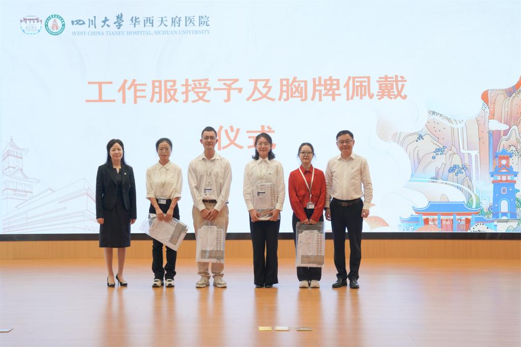 随后,新员工医生代表施晓梅、护士代表孙萌分别发言。面对机遇与挑战,他们表示将以优秀前辈为榜样,牢记自己的职责和使命,坚守岗位职责,不断提高自身的业务素质和医疗技术水平,在华西天府医院提供的平台上共创事业和人生新篇章。