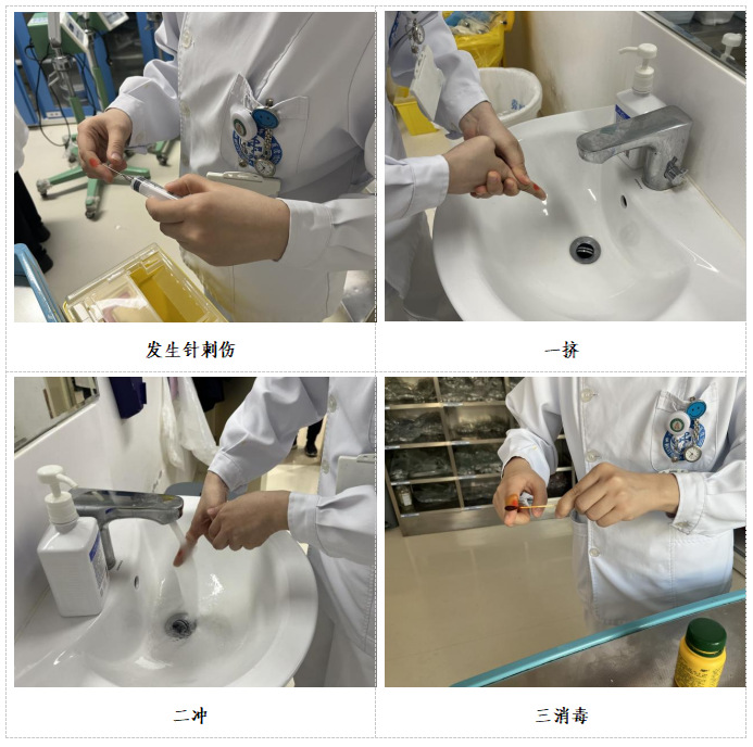 本次演练采用桌面推演和现场情景模拟相结合的形式,模拟护士在病房给艾滋病患者进行诊疗操作发生针刺伤后的应急处置。从发生针刺伤、应急处理伤口、报备科室、急诊就医、院感部追踪随访、病房开展针对性培训等全过程进行模拟演练,真实还原了医务人员在工作中发生职业暴露的应急处置情境。