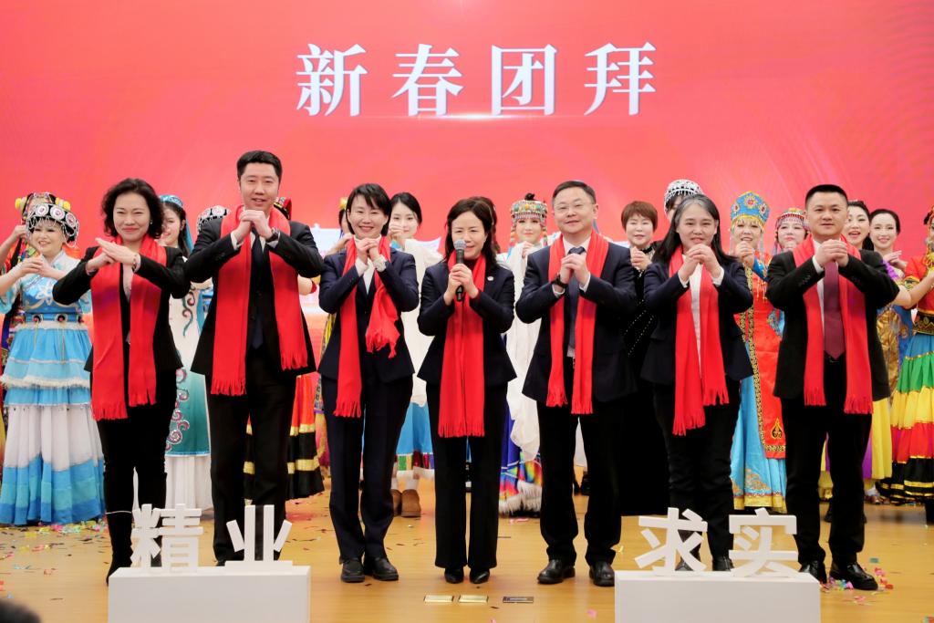 在全体合唱《爱我中华》的歌声中,饶莉书记、康焰院长等院党政领导班子集体上台为全院职工送上新春祝福,祝大家新的一年身体健康、阖家幸福、一帆风顺、巳巳如意!