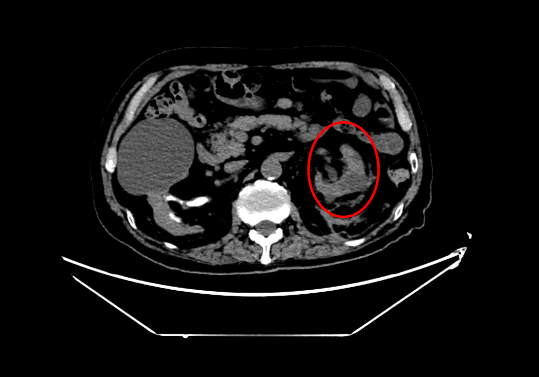 患者何爷爷(化名),86岁,入院前一个月无明显诱因出现肉眼血尿,伴有尿痛、尿频、腰痛等症状,且症状持续存在,严重影响生活。门诊初步检查提示其病情复杂,包括双肾结石、左输尿管结石、双肾萎缩、双肾盂及输尿管上段慢性炎症、前列腺增大伴钙化、慢性膀胱炎以及高血压等多种基础疾病。
