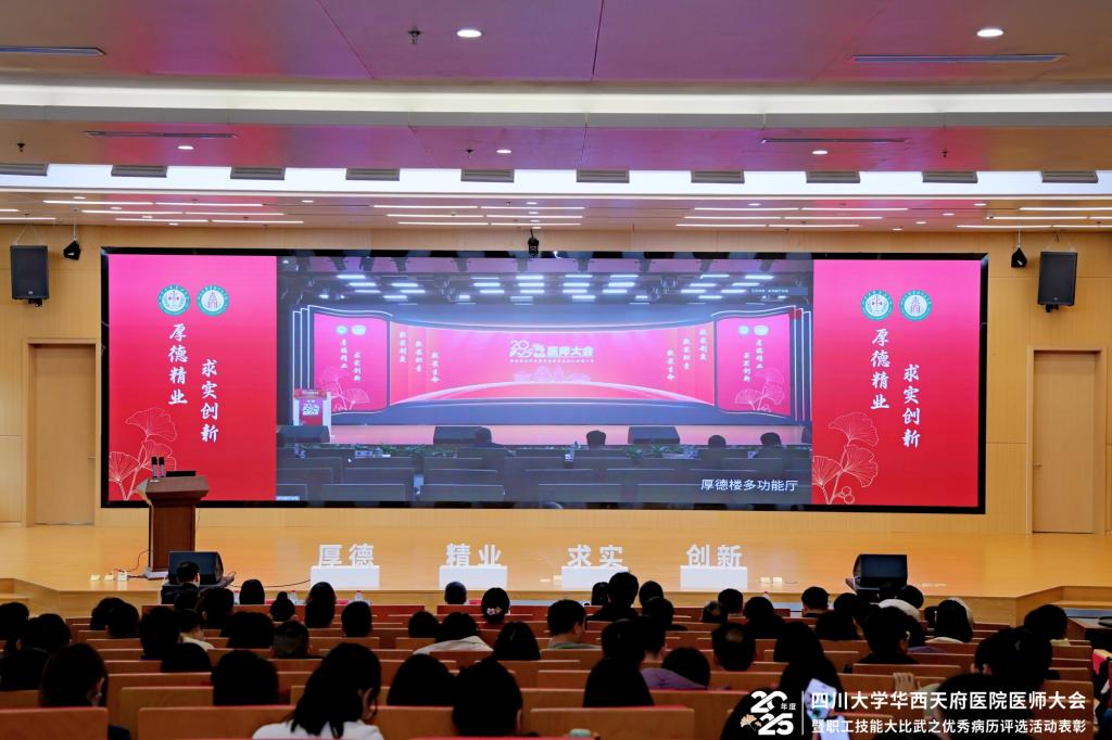 12月28日,以“筑牢医疗安全基石,护航医院高质量发展”为主题,四川大学华西医院召开2025年度医师大会。我院作为分会场之一,在行政楼多功能厅同步召开2025年度医师大会暨职工技能大比武之优秀病历评选活动颁奖仪式。我院饶莉书记、康焰院长等全体在家院领导、医疗口职能部门负责人及全院执业医生共计300余人参加大会。