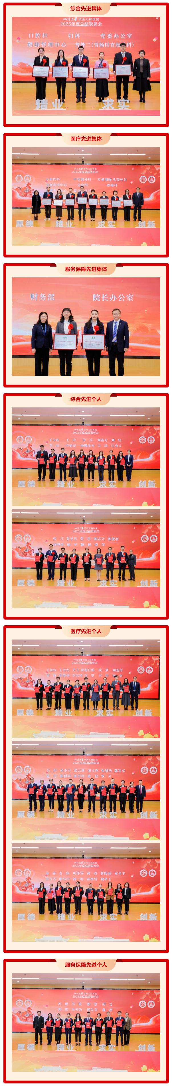在表彰环节,饶莉书记宣读《关于表彰2025年度先进个人和先进集体的决定》。大会对2025年做出优秀成绩的15个先进集体、60名先进个人进行表彰,并通过视频回顾了先进集体的优秀事迹。与会领导分别为受表彰的集体和个人颁奖。
