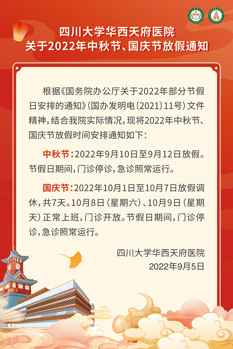 最新通知丨国庆期间,华西天府医院10月4日-7日门诊正常开诊