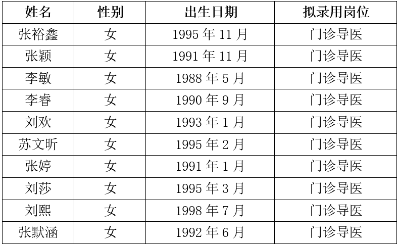 根据相关文件规定,按照公开招聘、择优录用的原则,现将拟录用人员予以公示,公示时间为5个工作日。公示期间如有异议,请实名向华西天府医院人事科教部反映。联系电话028-60660028。