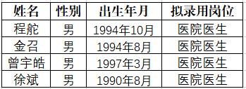 根据相关文件规定,按照公开招聘、择优录用的原则,现将拟录用人员予以公示,公示时间为5个工作日。公示期间如有异议,请实名向华西天府医院人事科教部反映。联系电话028-60660028。