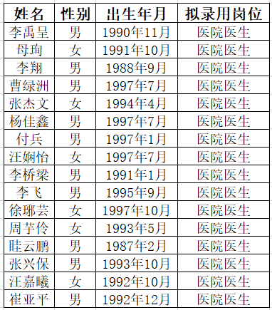根据相关文件规定,按照公开招聘、择优录用的原则,现将拟录用人员予以公示,公示时间为5个工作日。公示期间如有异议,请实名向华西天府医院人事科教部反映。联系电话028-60660028。