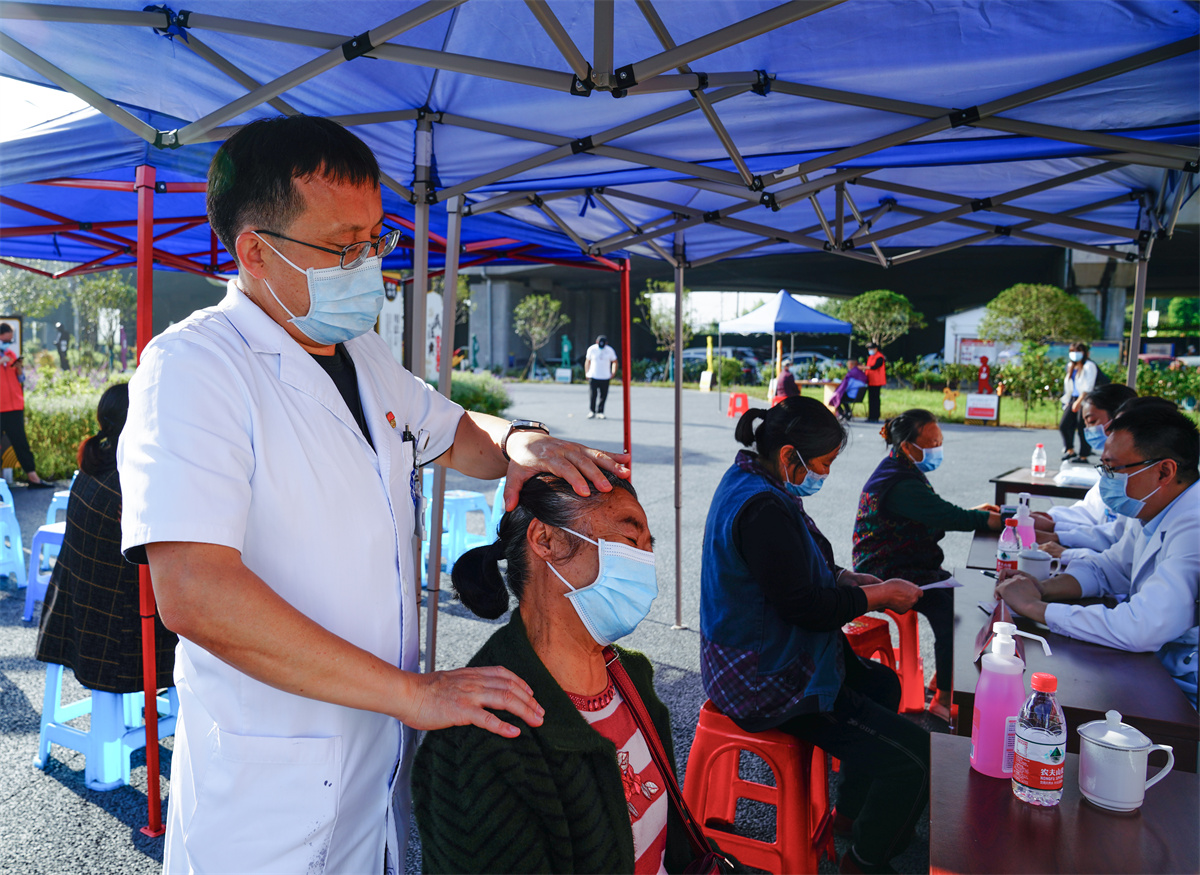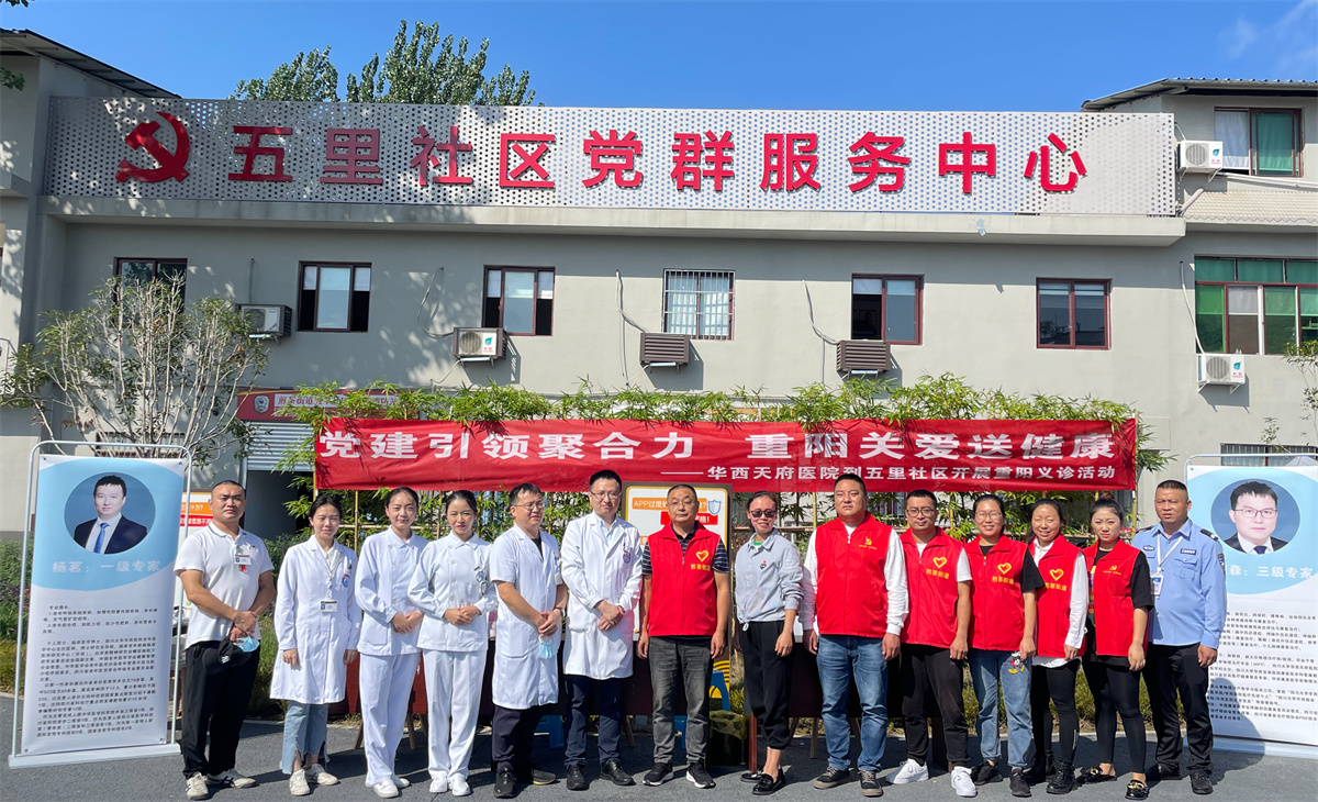 近日,我院与煎茶街道五里社区开展了主题为“党建引领聚合力·重阳关爱送健康”的联合党建活动。我院综合医疗科博士生导师、主任医师杨茗,康复医学科主任、副主任医师贾程森,护理部主管护师赖小琴、护师熊桓为五里社区居民提供了健康咨询、测量血压等服务。