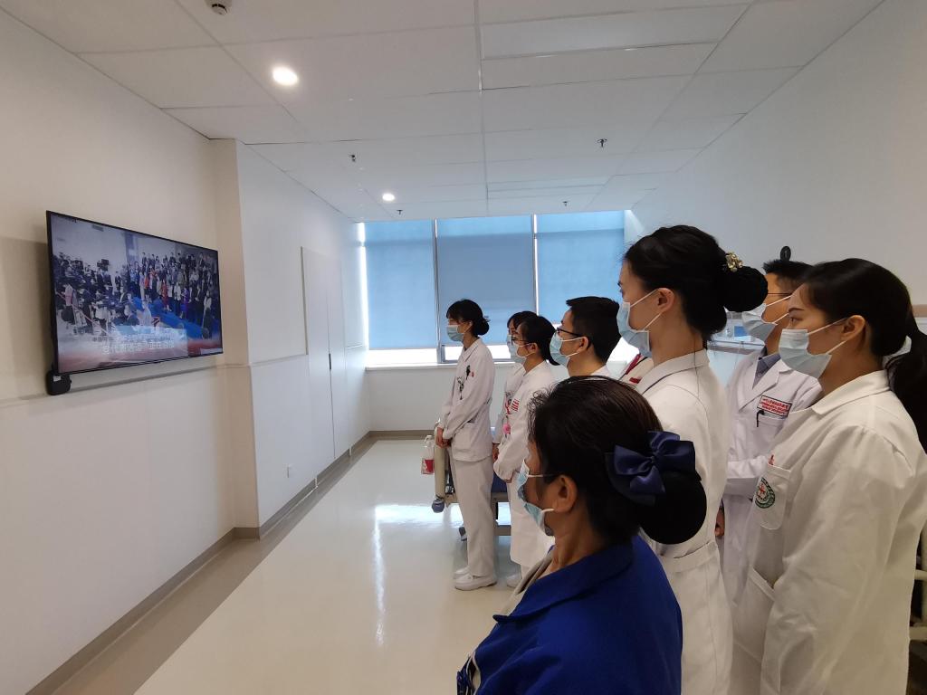 ▲心内心外病房医护人员集中观看开幕会直播