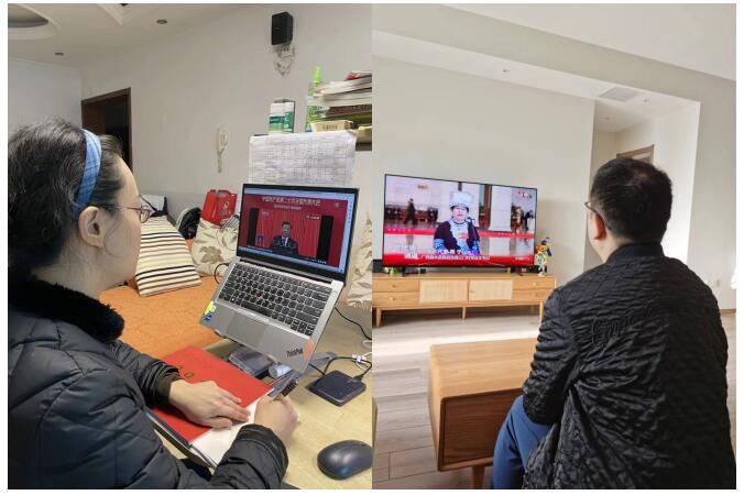 ▲党员群众居家观看开幕会直播
